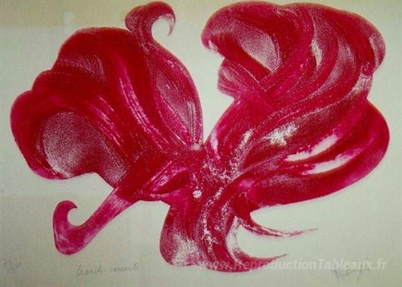 Nous vous proposons une reproduction artisanale sur toile du célèbre tableau 'Courants de tranche' de Jean Messagier, provenant du Musée de la Reproduction.