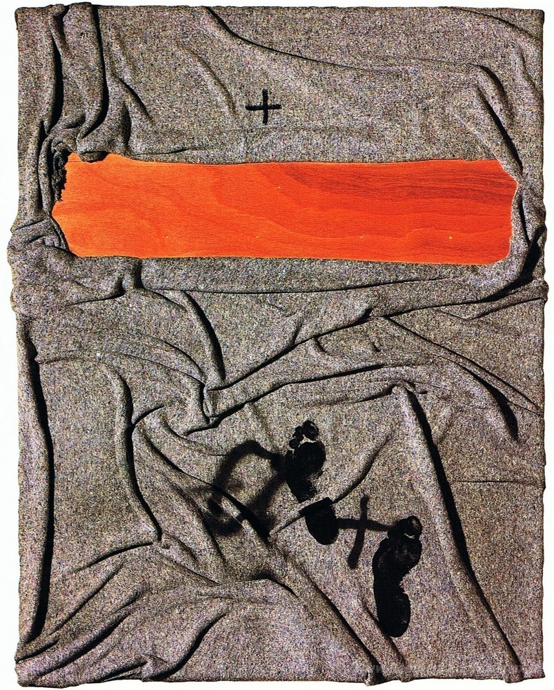 Nous vous proposons une reproduction artisanale sur toile du célèbre tableau 'Couverture avec des pistes' de Antoni Tapies, provenant du Musée de la Reproduction.