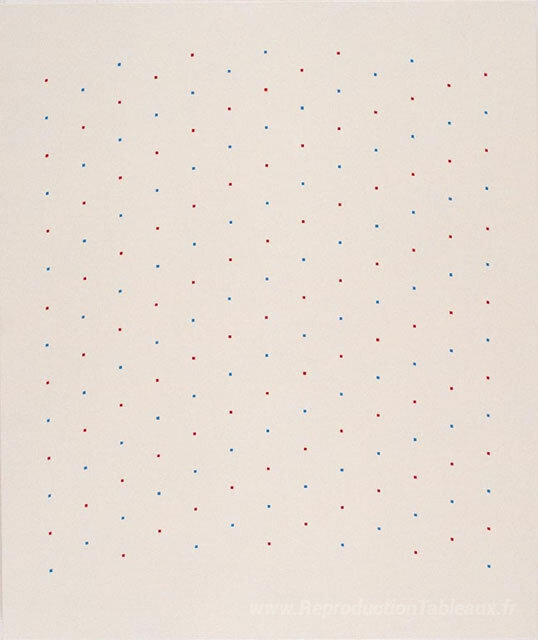 Nous vous proposons une reproduction artisanale sur toile du célèbre tableau 'Crème et bleu' de Tess Jaray, provenant du Musée de la Reproduction.