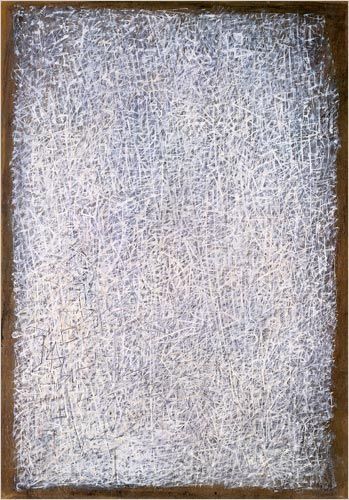 Nous vous proposons une reproduction artisanale sur toile du célèbre tableau 'Cristallisations' de Mark Tobey, provenant du Musée de la Reproduction.