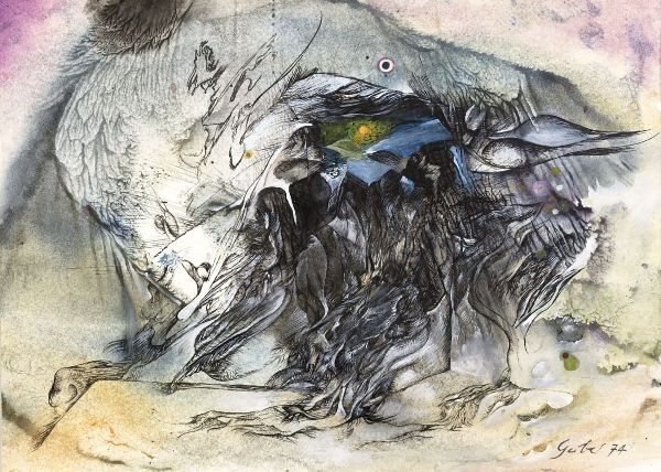 Nous vous proposons une reproduction artisanale sur toile du célèbre tableau 'Dans l'oeil du cyclone' de Theo Gerber, provenant du Musée de la Reproduction.