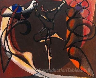 Nous vous proposons une reproduction artisanale sur toile du célèbre tableau 'Danse i' de Frank Lobdell, provenant du Musée de la Reproduction.