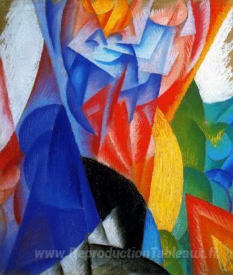 Nous vous proposons une reproduction artisanale sur toile du célèbre tableau 'Danseuse + voile + mer = bouquet' de Gino Severini, provenant du Musée de la Reproduction.