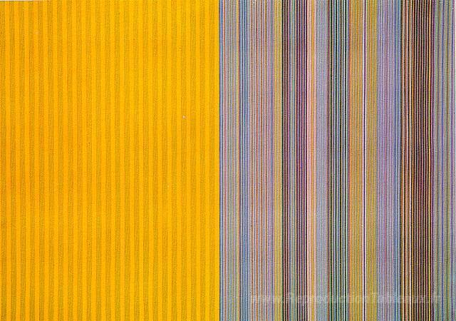 Nous vous proposons une reproduction artisanale sur toile du célèbre tableau 'Demi-citron' de Gene Davis, provenant du Musée de la Reproduction.