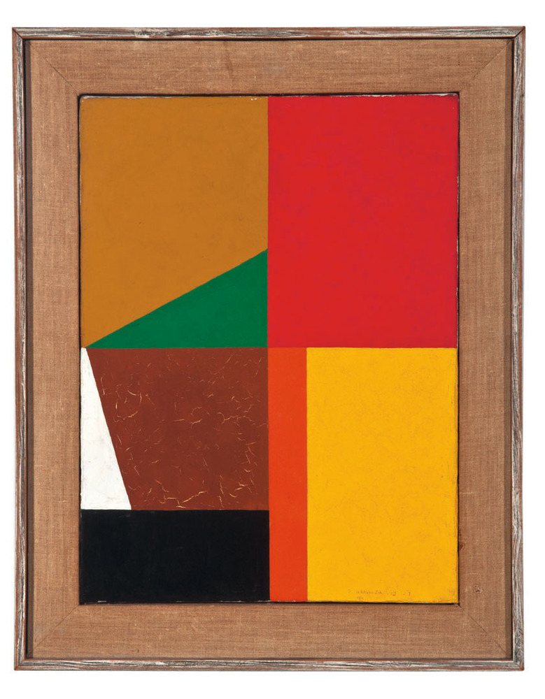 Nous vous proposons une reproduction artisanale sur toile du célèbre tableau 'Différents trimestres # 12' de Frederick Hammersley, provenant du Musée de la Reproduction.
