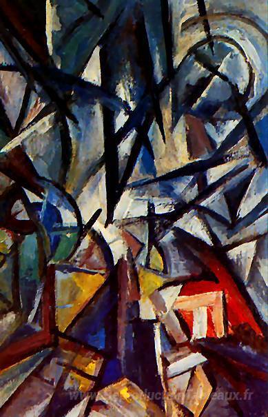 Nous vous proposons une reproduction artisanale sur toile du célèbre tableau 'Disjonction des formulaires' de Olga Rozanova, provenant du Musée de la Reproduction.