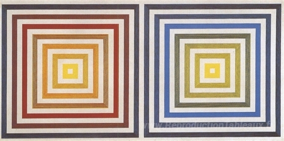 Nous vous proposons une reproduction artisanale sur toile du célèbre tableau 'Du jaune au violet' de Francois Morellet, provenant du Musée de la Reproduction.