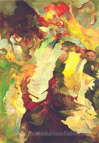 Nous vous proposons une reproduction artisanale sur toile du célèbre tableau 'Ein Wispern um den gestürzten Ercole' de Bernard Schultze, provenant du Musée de la Reproduction.