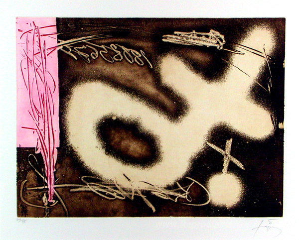 Nous vous proposons une reproduction artisanale sur toile du célèbre tableau 'El pendulo inmóvil i' de Antoni Tapies, provenant du Musée de la Reproduction.