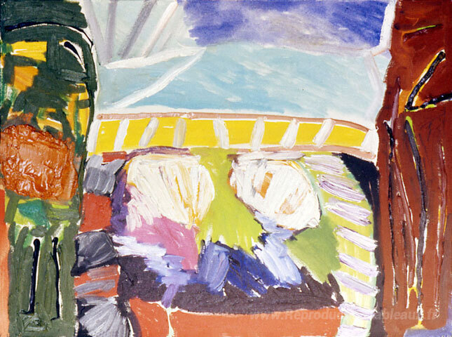 Nous vous proposons une reproduction artisanale sur toile du célèbre tableau 'Entrée tauréenne' de Ronnie Landfield, provenant du Musée de la Reproduction.