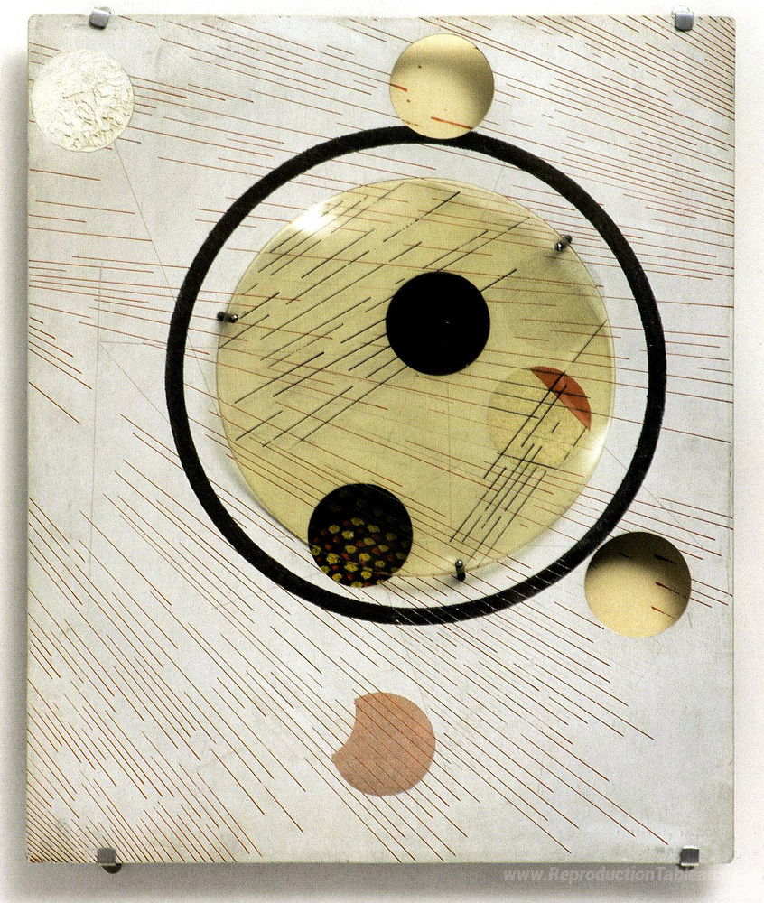 Nous vous proposons une reproduction artisanale sur toile du célèbre tableau 'Expérience du modulateur d'espace, aluminium 5' de Laszlo Moholy-Nagy, provenant du Musée de la Reproduction.