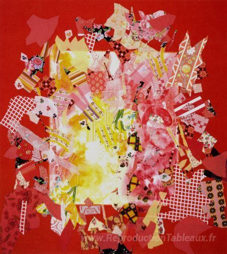 Nous vous proposons une reproduction artisanale sur toile du célèbre tableau 'Exploser' de Miriam Schapiro, provenant du Musée de la Reproduction.