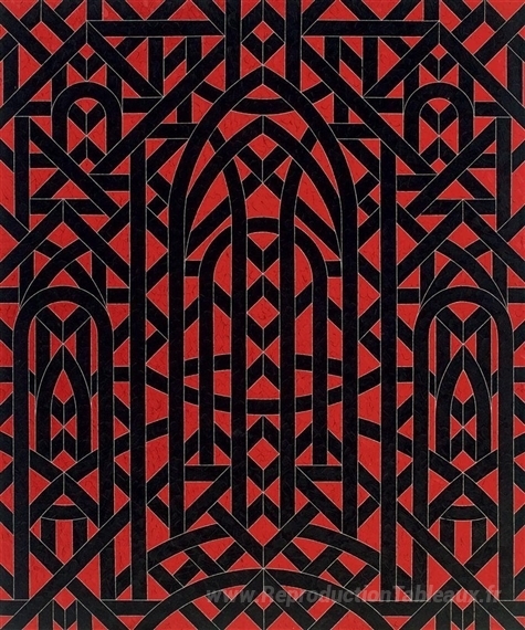 Nous vous proposons une reproduction artisanale sur toile du célèbre tableau 'extrémité est' de Valerie Jaudon, provenant du Musée de la Reproduction.