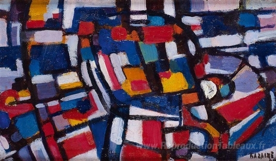 Nous vous proposons une reproduction artisanale sur toile du célèbre tableau 'Figura et Paysage' de Jean Rene Bazaine, provenant du Musée de la Reproduction.