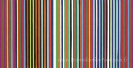 Nous vous proposons une reproduction artisanale sur toile du célèbre tableau 'Flamant' de Gene Davis, provenant du Musée de la Reproduction.