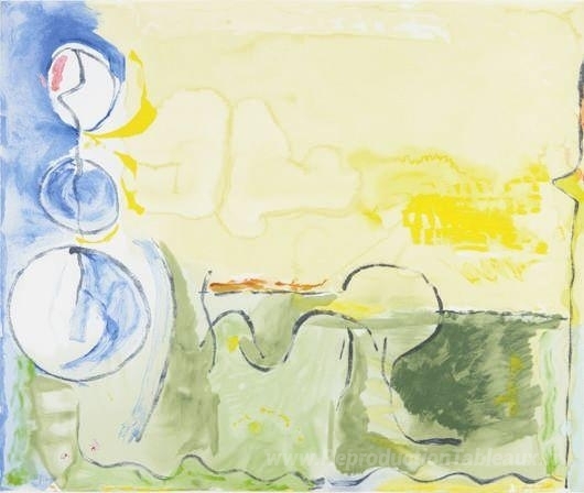 Nous vous proposons une reproduction artisanale sur toile du célèbre tableau 'Flottille' de Helen Frankenthaler, provenant du Musée de la Reproduction.
