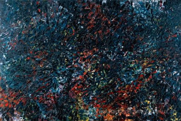Nous vous proposons une reproduction artisanale sur toile du célèbre tableau 'Forestier' de Jean-Paul Riopelle, provenant du Musée de la Reproduction.