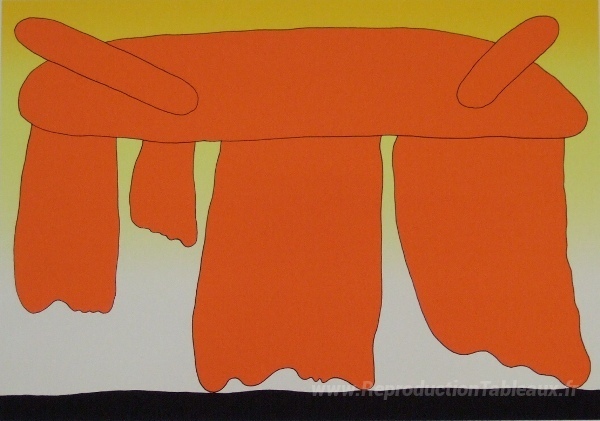 Nous vous proposons une reproduction artisanale sur toile du célèbre tableau 'Forme d'orange' de Sadamasa Motonaga, provenant du Musée de la Reproduction.