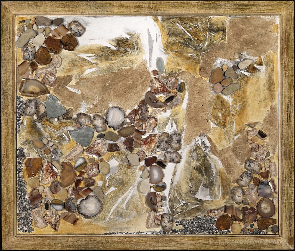 Nous vous proposons une reproduction artisanale sur toile du célèbre tableau 'Frazer's Hog Cay # 18' de Jane Frank, provenant du Musée de la Reproduction.