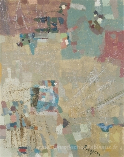 Nous vous proposons une reproduction artisanale sur toile du célèbre tableau 'Fusion diffusee' de Camille Bryen, provenant du Musée de la Reproduction.