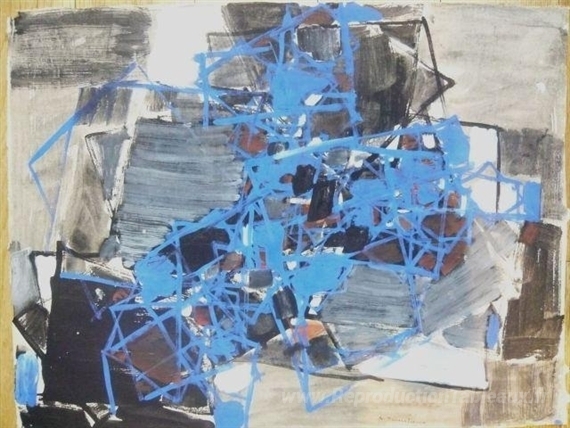 Nous vous proposons une reproduction artisanale sur toile du célèbre tableau 'Géométrique de composition' de Natalia Dumitresco, provenant du Musée de la Reproduction.