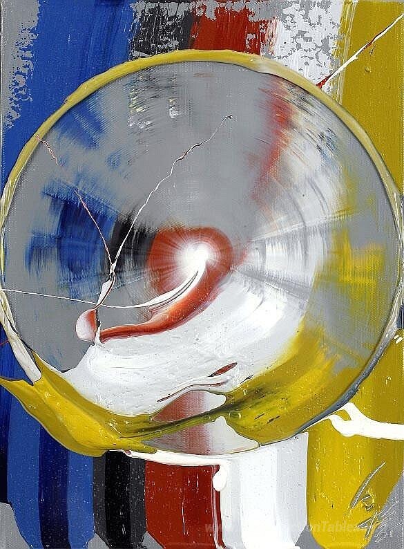 Nous vous proposons une reproduction artisanale sur toile du célèbre tableau 'Goshiki sanmai' de Kazuo Shiraga, provenant du Musée de la Reproduction.