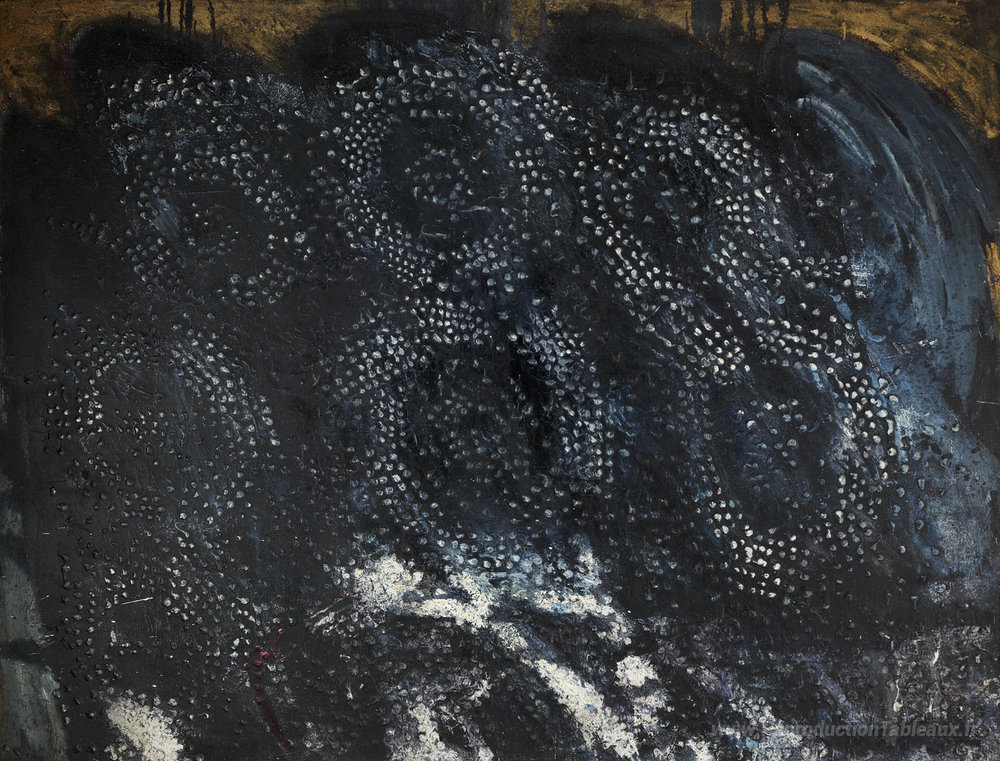 Nous vous proposons une reproduction artisanale sur toile du célèbre tableau 'Grande costellazione bleue' de Horia Damian, provenant du Musée de la Reproduction.