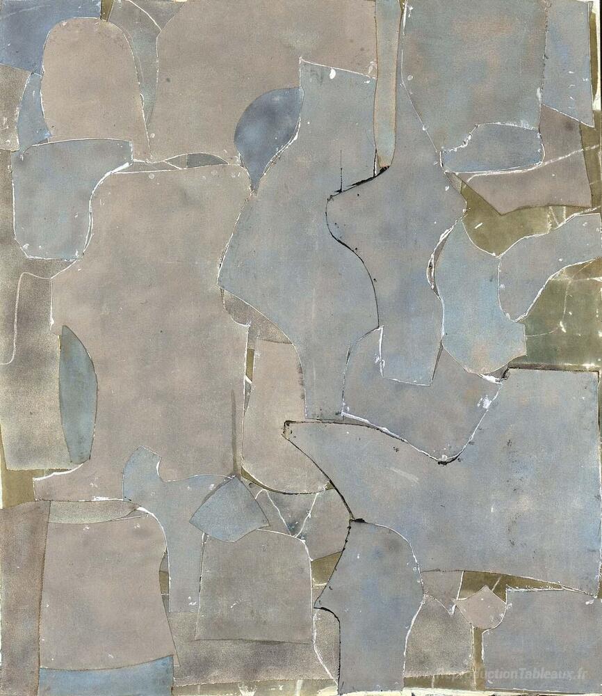 Nous vous proposons une reproduction artisanale sur toile du célèbre tableau 'Gris acier' de Conrad Marca-Relli, provenant du Musée de la Reproduction.