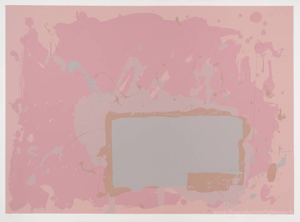 Nous vous proposons une reproduction artisanale sur toile du célèbre tableau 'Gris / bleu sur rose' de John Hoyland, provenant du Musée de la Reproduction.