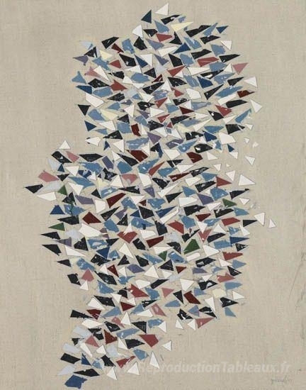 Nous vous proposons une reproduction artisanale sur toile du célèbre tableau 'Groupe de formes' de Robert Goodnough, provenant du Musée de la Reproduction.