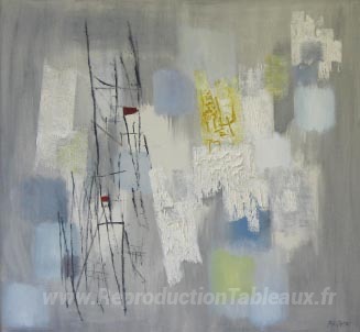 Nous vous proposons une reproduction artisanale sur toile du célèbre tableau 'Heller Garten' de Fritz Winter, provenant du Musée de la Reproduction.
