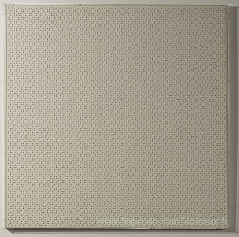 Nous vous proposons une reproduction artisanale sur toile du célèbre tableau 'Homogène struktur mit positiven eletenen' de Gerhard von Graevenitz, provenant du Musée de la Reproduction.