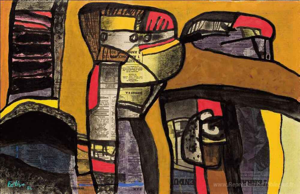Nous vous proposons une reproduction artisanale sur toile du célèbre tableau 'Huile Sur Papier Journal n ° 4' de Maurice Esteve, provenant du Musée de la Reproduction.