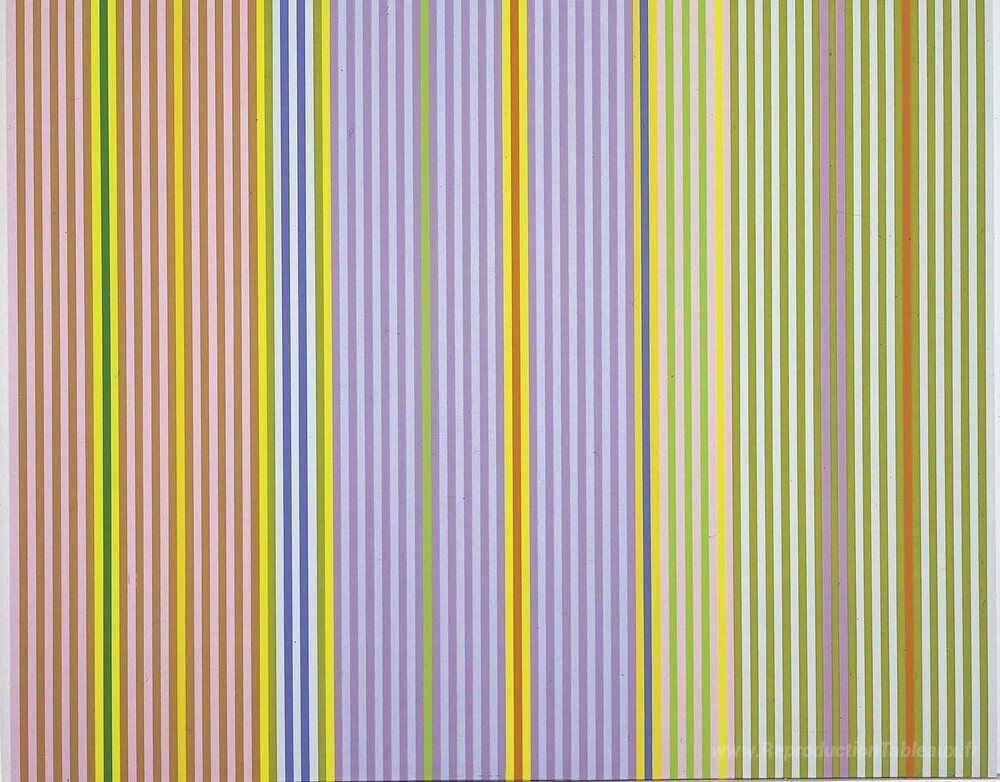 Nous vous proposons une reproduction artisanale sur toile du célèbre tableau 'Ianthe' de Gene Davis, provenant du Musée de la Reproduction.