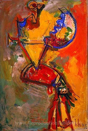 Nous vous proposons une reproduction artisanale sur toile du célèbre tableau 'Idolatress je' de Hans Hofmann, provenant du Musée de la Reproduction.