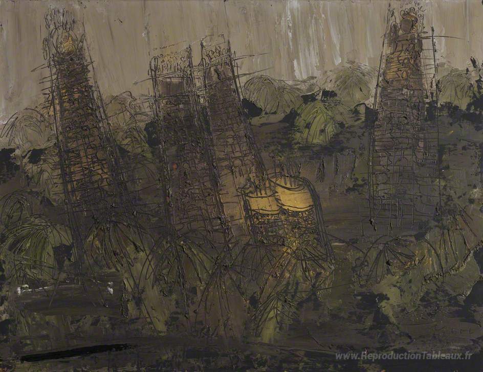 Nous vous proposons une reproduction artisanale sur toile du célèbre tableau 'Inde, Temples n ° 2 (Temple Sri Ranganathaswamy, Tiruchirapalli)' de William Congdon, provenant du Musée de la Reproduction.