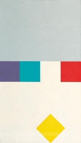 Nous vous proposons une reproduction artisanale sur toile du célèbre tableau 'Jaune détaché de la rangée' de Camille Graeser, provenant du Musée de la Reproduction.