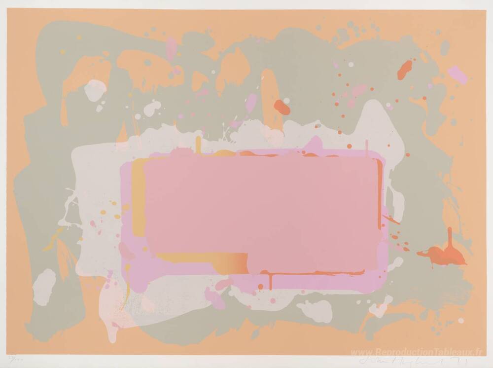 Nous vous proposons une reproduction artisanale sur toile du célèbre tableau 'Jaune et rose' de John Hoyland, provenant du Musée de la Reproduction.