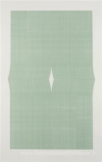 Nous vous proposons une reproduction artisanale sur toile du célèbre tableau 'Je suppose que c'est' de Tess Jaray, provenant du Musée de la Reproduction.
