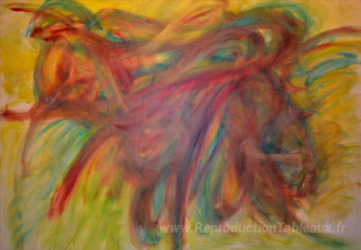 Nous vous proposons une reproduction artisanale sur toile du célèbre tableau 'Juillet à Antennese' de Jean Messagier, provenant du Musée de la Reproduction.