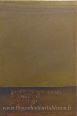 Nous vous proposons une reproduction artisanale sur toile du célèbre tableau 'Kei muri i te awe kapara (ombragé derrière le visage tatoué)' de Ralph Hotere, provenant du Musée de la Reproduction.