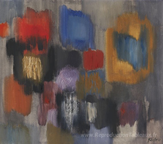 Nous vous proposons une reproduction artisanale sur toile du célèbre tableau 'Kleiner Garten' de Fritz Winter, provenant du Musée de la Reproduction.