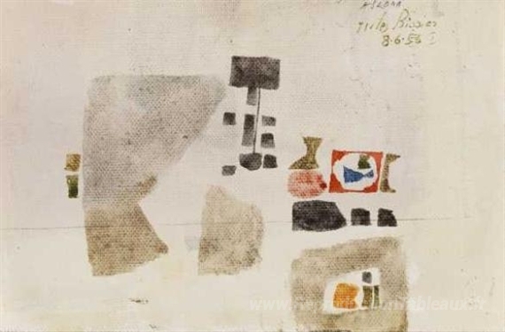 Nous vous proposons une reproduction artisanale sur toile du célèbre tableau 'Komposition' de Julius Bissier, provenant du Musée de la Reproduction.
