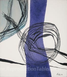 Nous vous proposons une reproduction artisanale sur toile du célèbre tableau 'Kreisend vor Violett' de Fritz Winter, provenant du Musée de la Reproduction.