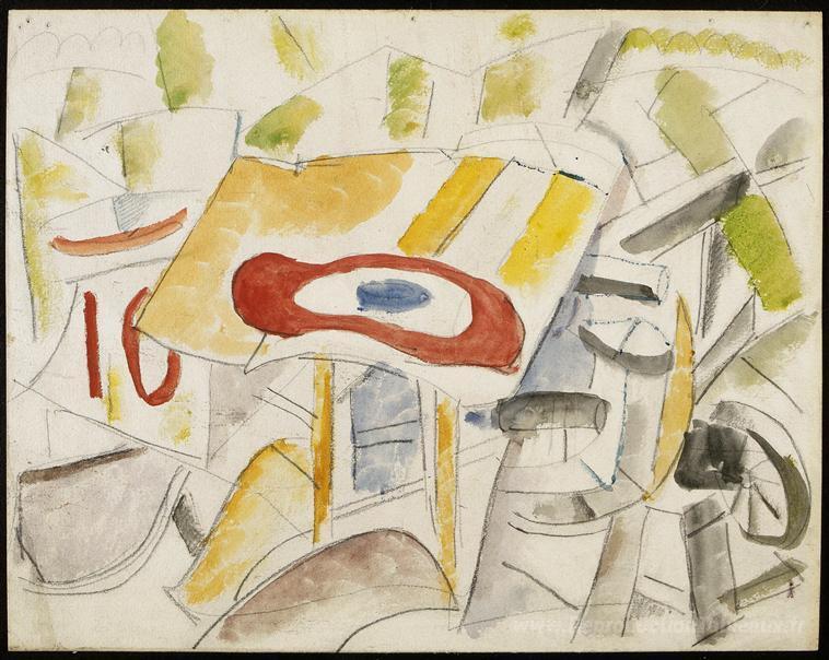 Nous vous proposons une reproduction artisanale sur toile du célèbre tableau 'La cocarde, l'avion a brisé' de Fernand Leger, provenant du Musée de la Reproduction.