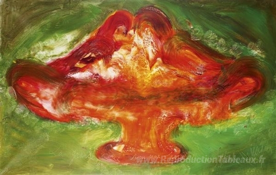 Nous vous proposons une reproduction artisanale sur toile du célèbre tableau 'La Grande Rosée pour une porcelaine de septembre de septembre' de Jean Messagier, provenant du Musée de la Reproduction.