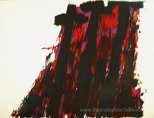 Nous vous proposons une reproduction artisanale sur toile du célèbre tableau 'Le crucificateur' de Alfred Manessier, provenant du Musée de la Reproduction.