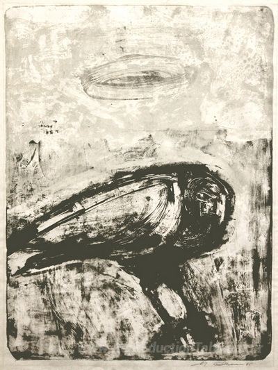 Nous vous proposons une reproduction artisanale sur toile du célèbre tableau 'Le grand oiseau' de Nathan Oliveira, provenant du Musée de la Reproduction.