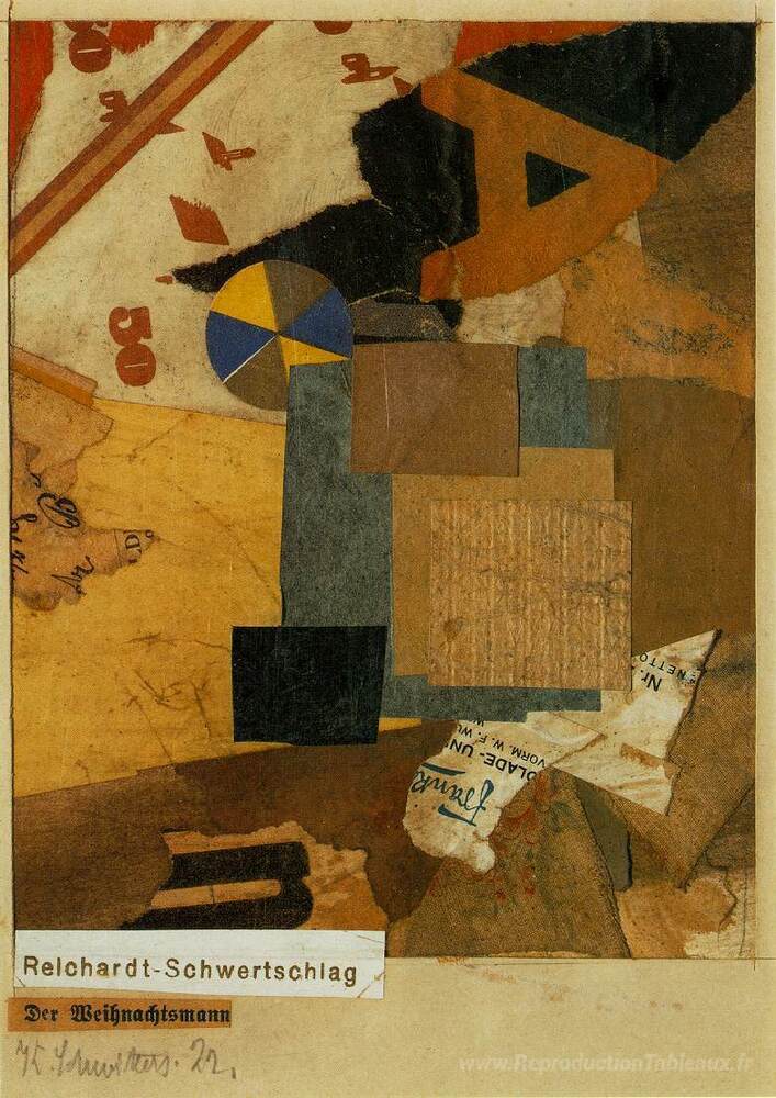 Nous vous proposons une reproduction artisanale sur toile du célèbre tableau 'le père Noël' de Kurt Schwitters, provenant du Musée de la Reproduction.