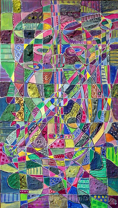 Nous vous proposons une reproduction artisanale sur toile du célèbre tableau 'Le quatuor Kora' de Nzante Spee, provenant du Musée de la Reproduction.
